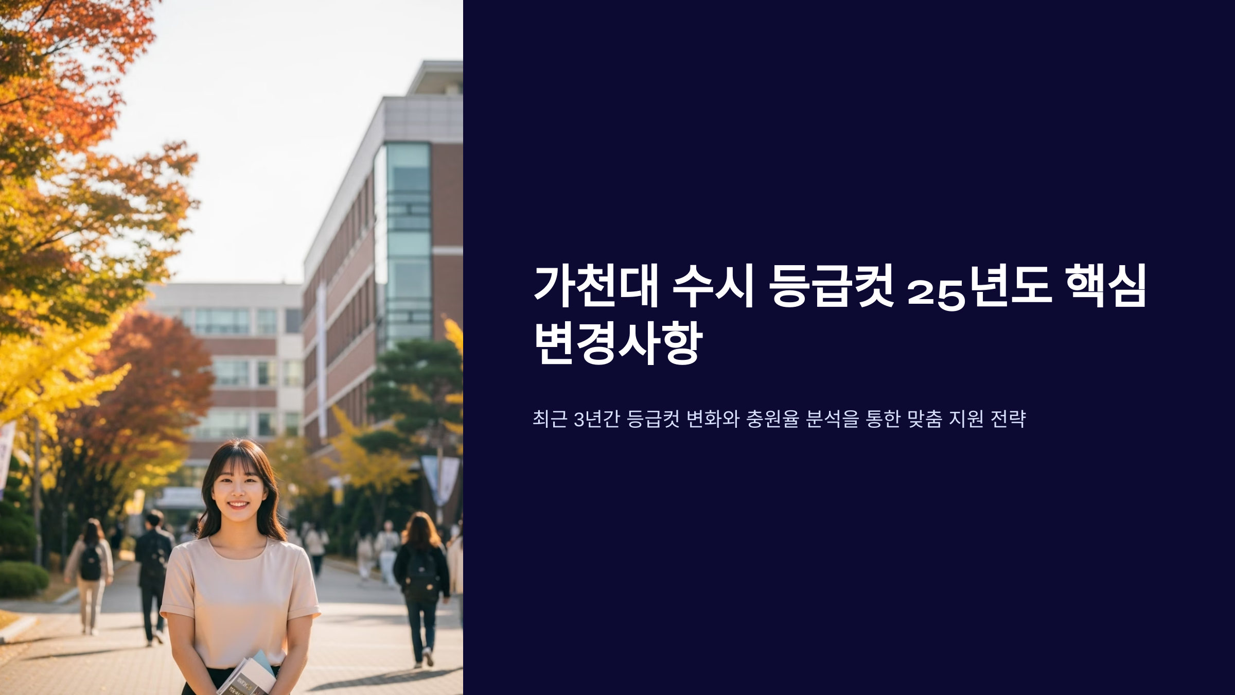 2025학년도 가천대 수시모집의 가장 큰 변화는 '내신 성적의 실질적인 영향력 변화'에 있습니다. 수험생들은 이 변화의 의미를 정확히 파악하고 자신에게 유리한 전형을 선택해야 합니다. 과거의 가천대 수시 등급컷 데이터만 맹신하는 것은 매우 위험할 수 있습니다.