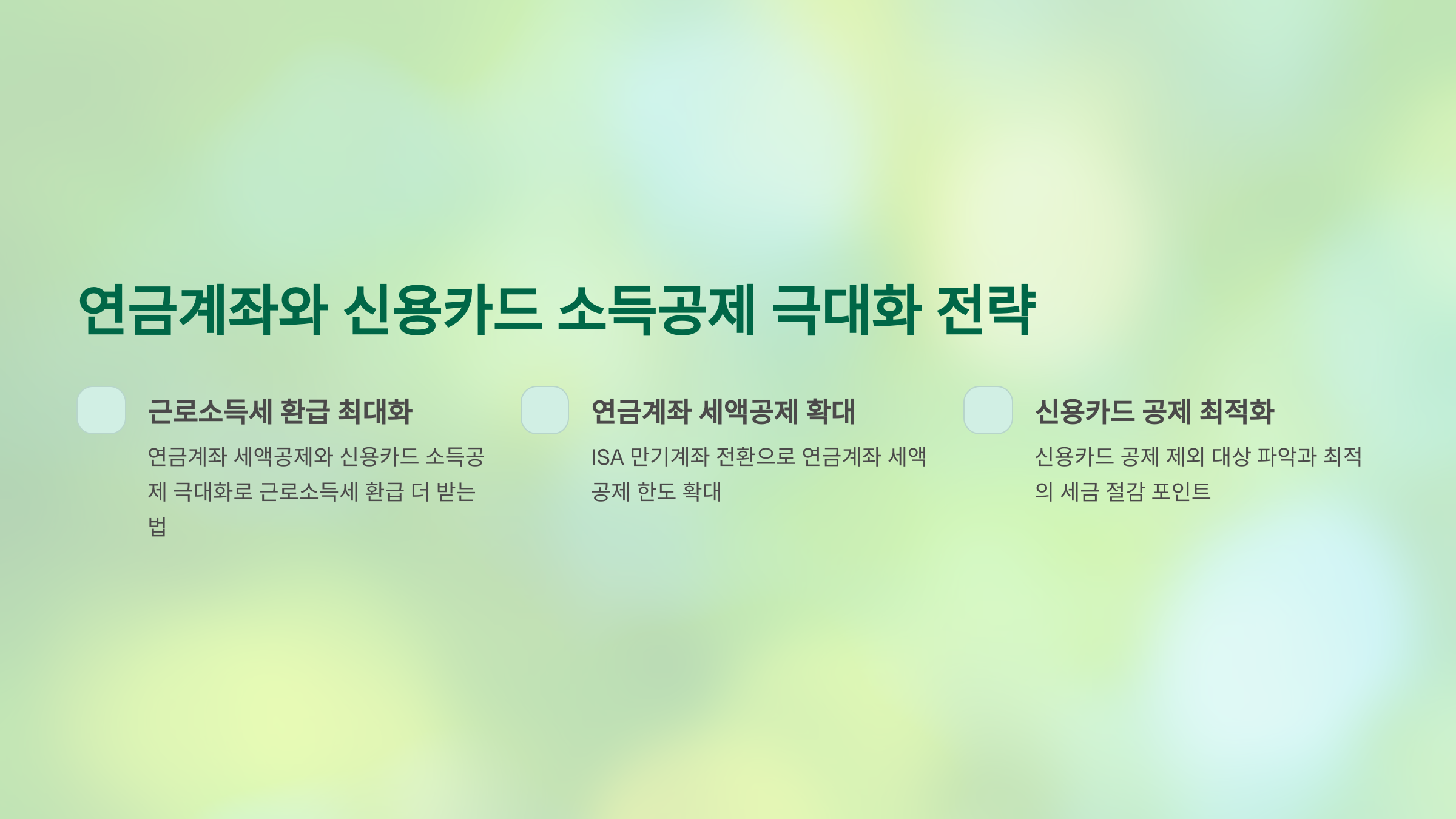 연금계좌 세액공제와 신용카드 소득공제는 계획적인 소비와 저축 습관을 통해 공제 혜택을 최대로 끌어올릴 수 있는 대표적인 항목입니다.