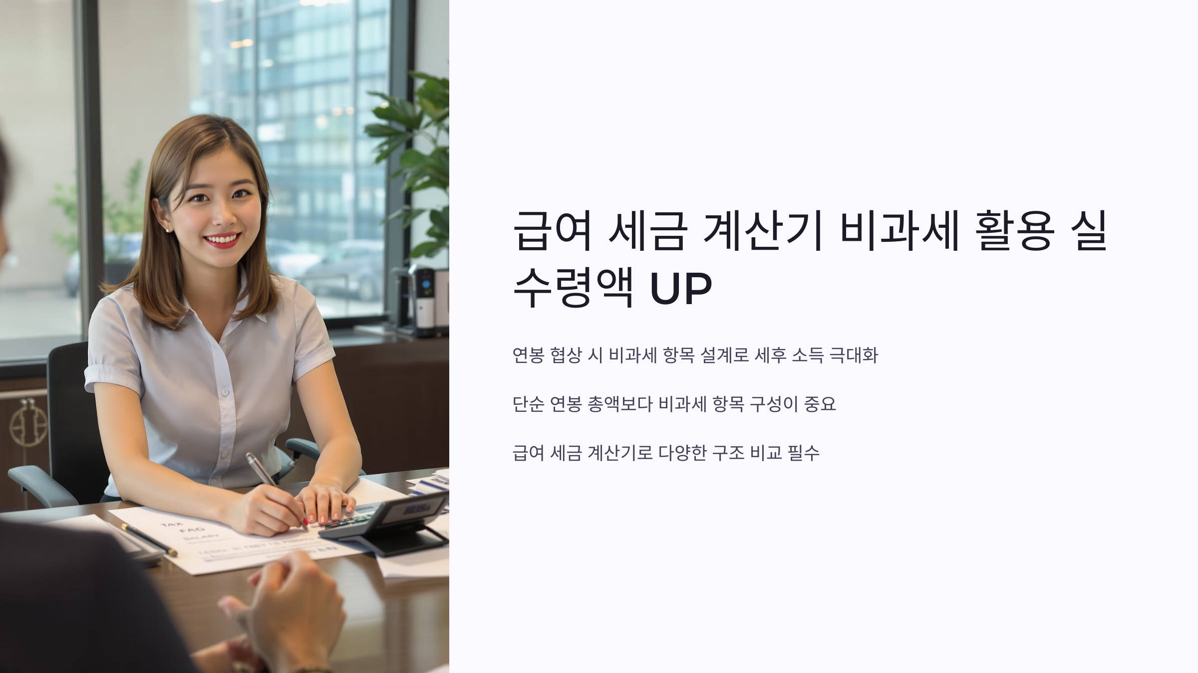 급여 세금 계산기 비과세 활용 실수령액 UP: 연봉 협상 및 계약 시 비과세 항목 설계로 절세 극대화 전략