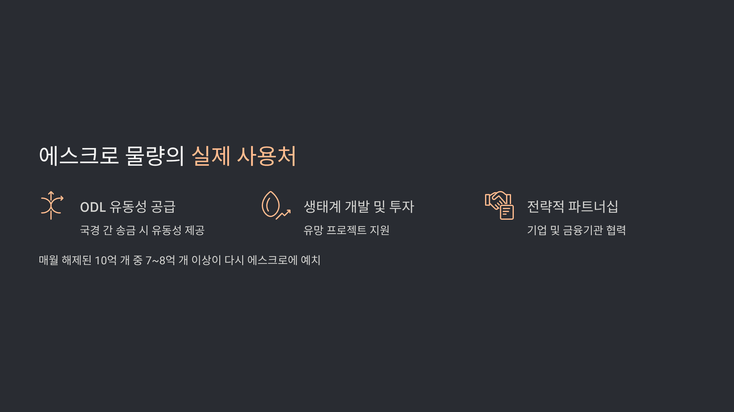 - 미사용분 처리: 사용되지 않은 XRP는 월말에 다시 에스크로에 예치됩니다.