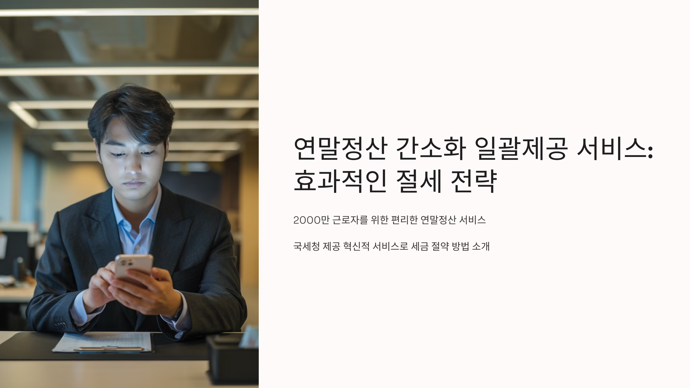 2000만 근로자의 편리한 연말정산을 위해 국세청이 제공하는 연말정산 간소화 일괄제공 서비스의 효과적인 활용 방법과 절세 전략을 소개합니다. 이 글을 통해 연말정산 간소화 일괄제공 서비스를 최대한 활용하여 세금을 절약하는 방법을 자세히 알아보겠습니다.