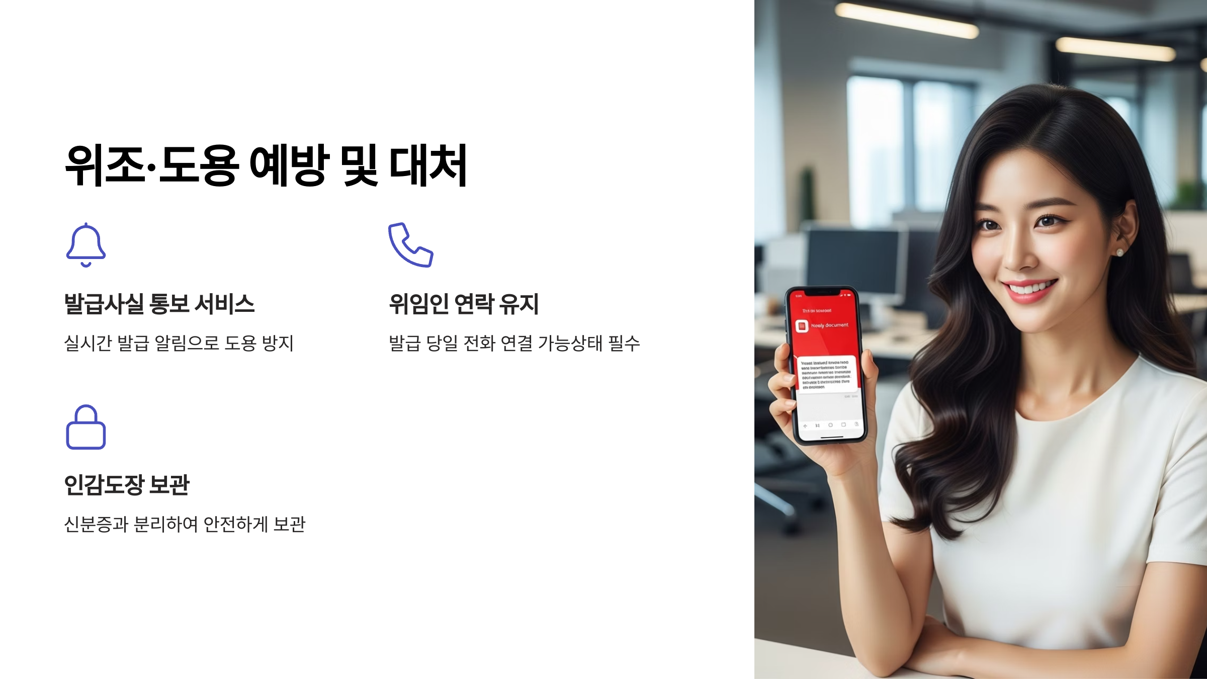 - 대처법: 대리인은 자신의 신분증 외에 위임인과의 관계를 입증할 수 있는 서류(예: 가족관계증명서)나 명함 등을 추가로 제시하여 신뢰를 높일 수 있습니다.