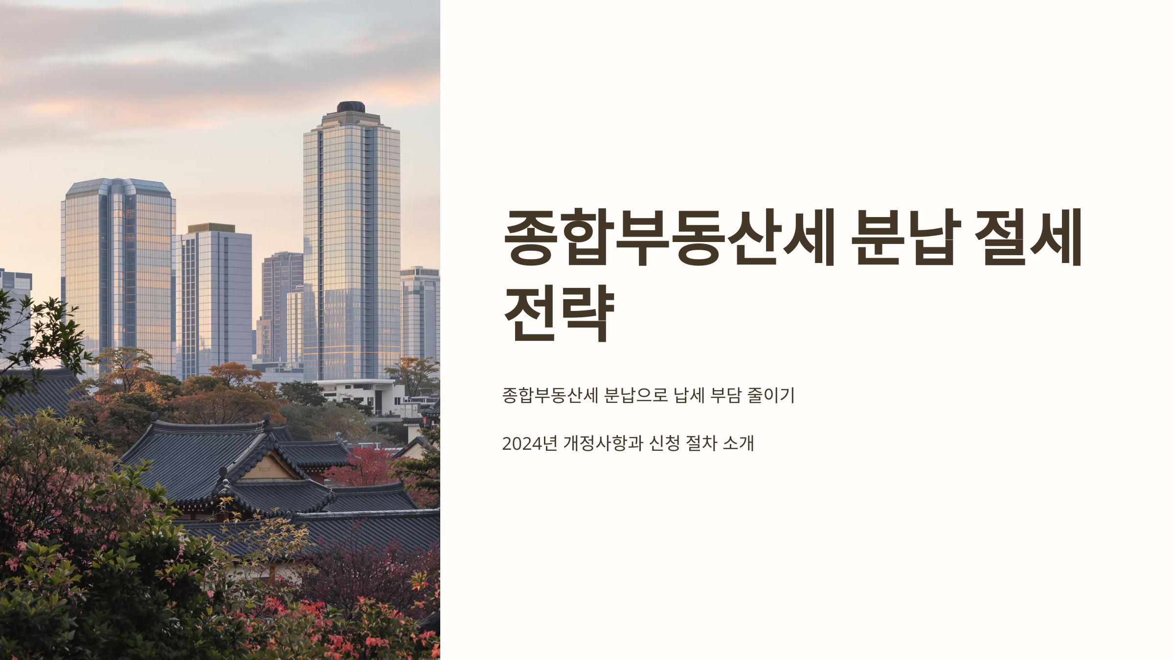 종합부동산세 분납 전략을 통해 납세 부담을 효과적으로 줄일 수 있는 방법들을 알아보겠습니다. 종합부동산세 분납 신청과 납부 시기 조정을 통해 현금 흐름을 개선하고 세금 부담을 분산시키는 전략적인 접근법을 제시합니다. 2024년부터는 종합부동산세 납부세액이 300만 원을 초과하는 경우 별도의 이자상당 가산액 부담 없이 6개월까지 분납이 가능하니 이를 잘 활용하시기 바랍니다.